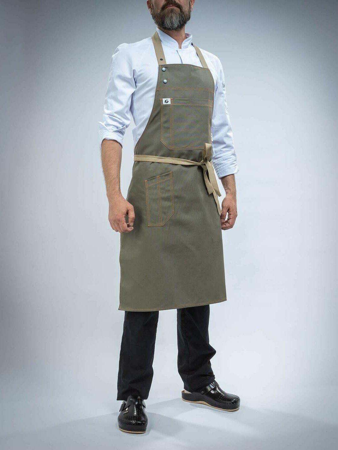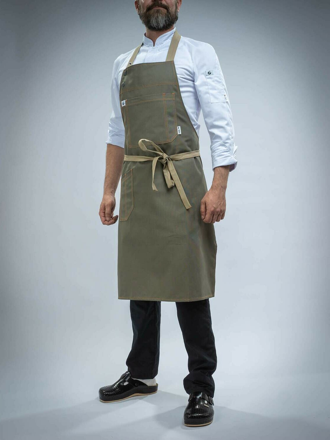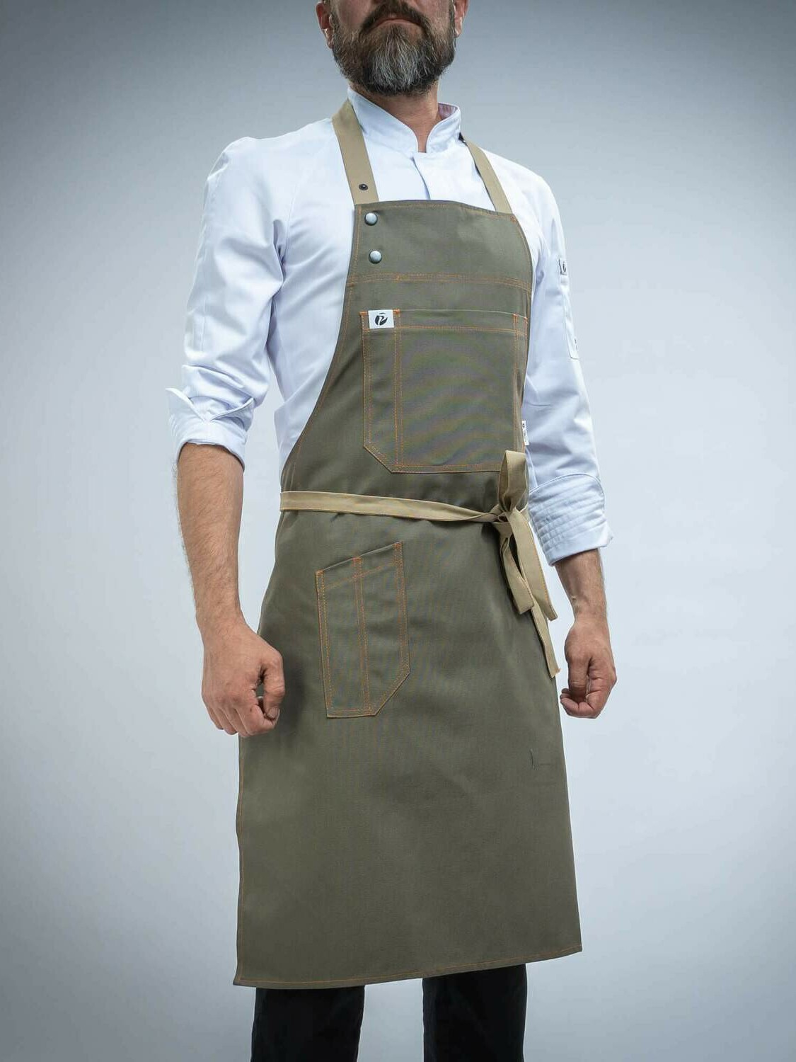 Фартуки серии FN4 PITERPROF отличаются особыми удобными карманами на груди и специальным боковым карманом для ручки или нарзанника.
