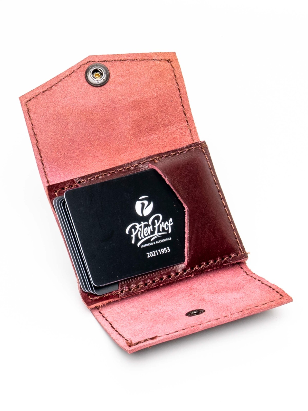 Этот практичный бумажник выполнен из мягкой натуральной кожи, а логотип PITERPROF на кнопке подчеркнет ваш стиль.