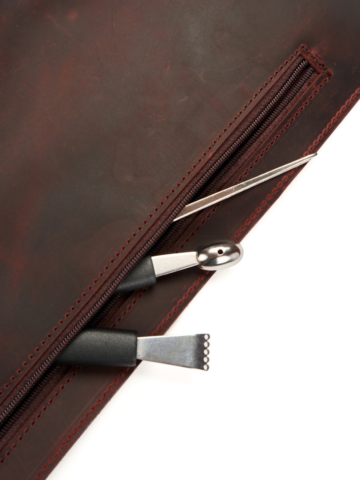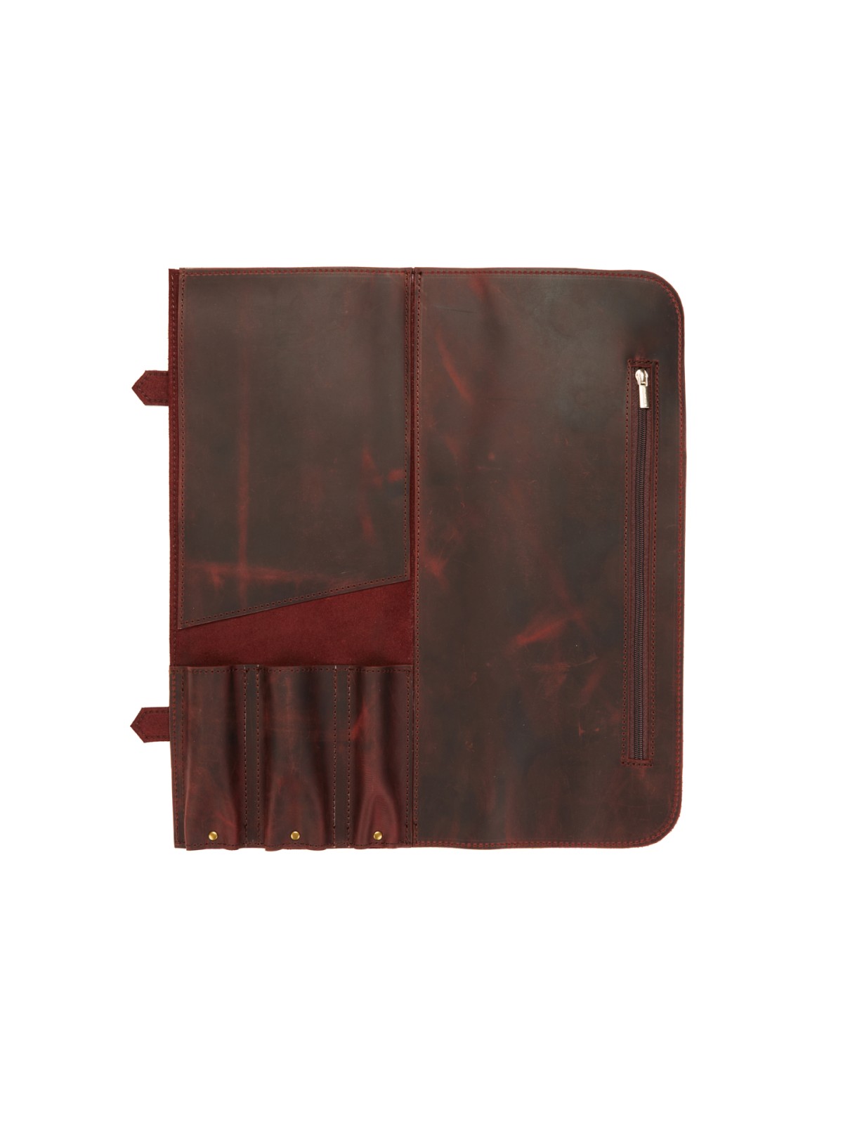 3 кармана для ножей и большой карман на молнии для остального инструмента.